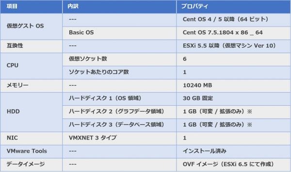 本製品のご利用にあたり対象となるHypervisorは、ヴイエムウェア社のVMware ESXi 5.5以降となります。この環境にて「System Answer G3」を稼働させる場合のデフォルト構成情報は以下の通りです。