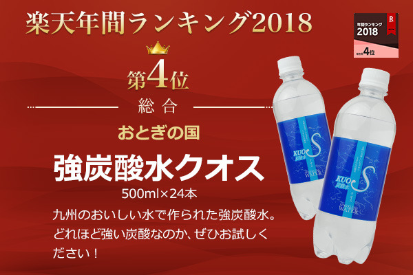 強炭酸水-KUOS-クオスは2013年に販売をスタートし、2014年の1年目で総合ランキング25位を獲得、また2016年には11位に上昇。2017年は7位、そしてついに2018年には4位にランキング入りしました。