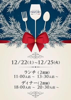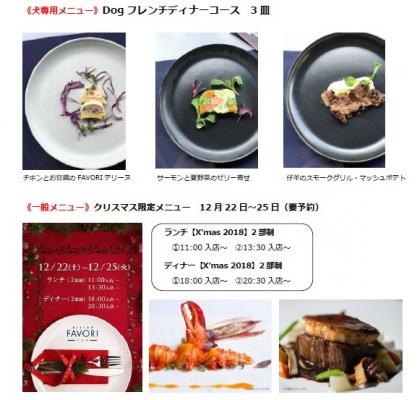 クリスマスは家族にとって特別な日であると思います。22日から25日まではクリスマス特別営業で対人向けに完全予約制の限定コースメニューをご用意しております。Dog フレンチに関しましてはディナーの時間だけでなくランチの時間帯にも《メインディッシュ》「オーストラリア産 仔羊のスモークグリル・マッシュポテト」を無料でプレゼントいたします。愛犬と共に特別なクリスマスをお過ごしいただければと思っております。