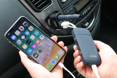 そのニーズに応える製品として、IQOS専用充電器の中でも、車のシガーソケットに接続することで充電ができるUSBカーチャージャーは、特に人気が高まっています。しかし現在、市場ではIQOSホルダー専用ポート、もしくはUSBポートのみ搭載の製品が多く発売されています。そこで、当社が新発売した本製品は、IQOSホルダー専用ポートに加え、2つのUSBポートを搭載することで、IQOSホルダーと、ポケットチャージャー、スマートフォンなどの機器を複数、同時に充電することを可能にしました。