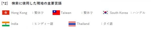 (※具体的な国と地域は香港、台湾、韓国、インド、タイ)