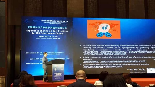 同カンファレンスは、中国反侵権假冒創新戦略聯盟(CAASA)、IPKey(EUIPO)の共催で開催され、EU、中国の知財関係機関や取締機関、大学などの研究者が多数参加。