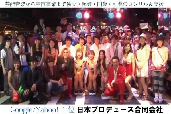 業態となるビジネス案件も魅惑の芸能音楽から宣伝PR業、IT・アプリに広告収益モデル、飲食や物販店舗、仕入れに卸業、海外ビジネスと壮大な宇宙事業まで日本プロデュース合同会社が手掛けるビジネスなら何なりと可能です。