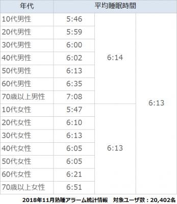 今回の統計では、全年代の平均睡眠時間は6時間13分でした。