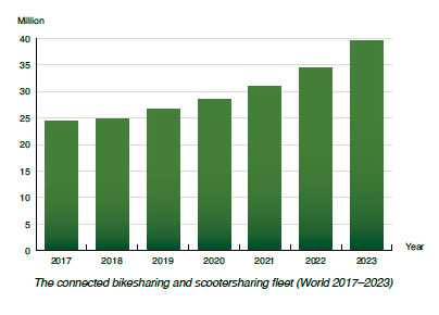 What are the latest developments on the bikesharing and scootersharing market? Berg Insight estimates that the number of deployed vehicles in bikesharing schemes will grow at a CAGR of 7 percent from 24.4 million at the end of 2017 to 36.9 million by 2023. The number of scooters available from scootersharing services will at the same time grow at a CAGR of 138 percent from 14,400 at the end of 2017 to 2.6 million vehicles in 2023. This report explains all segments including station-based and free floating bikesharing and scootersharing concepts. Get up to date with the latest information about micromobility organisations, vendors, products and markets.