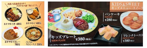「DiCE自由が丘店」は40種類以上の本格的な食事提供も行っており、現在は「冬のあったかフェア」として広島産牡蠣を使用したメニュー等を提供しております。また、キッズプレート ¥380(税込)も用意しており、離乳食やおやつ、その他飲食の持ち込みも可能です。