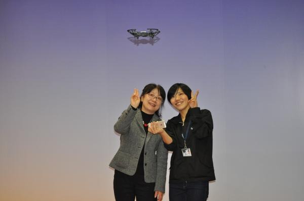 ドローンを使用しての自撮り体験会や、ゲームには多くの方が参加しました。実際にドローンを操縦し自撮りにチャレンジしたり、輪投げのゲームでドローンを操縦したりなどを通じて難易度を体験しました。参加者の方は「見た目が小さく操縦しやすそうなのに、いざ操縦すると難しい」「操縦が上手くなれば自撮りも自由自在にできる」「操縦技術さえあれば、人間が行けない所はドローンを飛ばし危険な所でも撮影が出来る」、「都心から近く、屋内で講習を受けられるから天候を気にしなくてもいい」など好評でした。