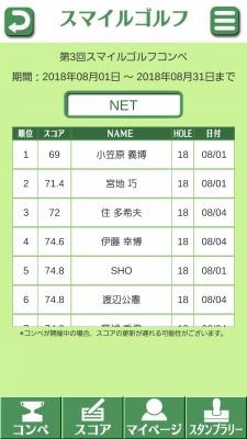 スコア提出は、「スマイルゴルフ」アプリにて提出。