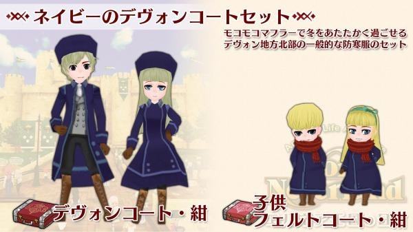 株式会社アルティ(本社:福岡県福岡市、代表取締役:宮崎慈彦)は、箱庭ライフシミュレーションゲーム『ワールドネバーランド エルネア王国の日々』Nintendo Switch版の追加コンテンツ「ネイビーのデヴォンコートセット」( 300円税別 ) を12月13日(木)からNintendo eShopで配信します。