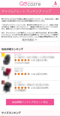 今回リリースをした「チャイルドシート 口コミランキング(β版)」は、ママパパのチャイルドシート選びをサポートする機能です。