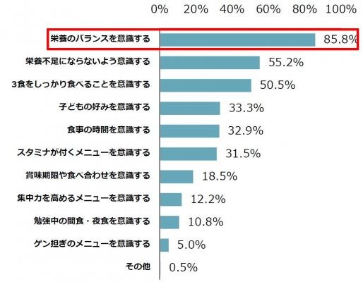 受験生の食事、母親が最も意識するのは「栄養のバランス(85.8%)」