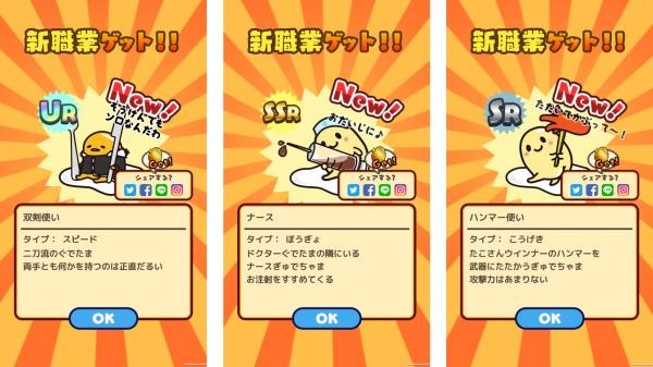 主人公ぐでたまが転職できる職業を増やすことができる本作のガチャシステムである「金のたまごポン」の内容が更新されました。新たな職業として、魔法タイプ職である「大天使」(UR)と、人気のスピードタイプ職の「レンジャー」(SSR)をはじめ、「魔法戦士」(SR)などが初登場!