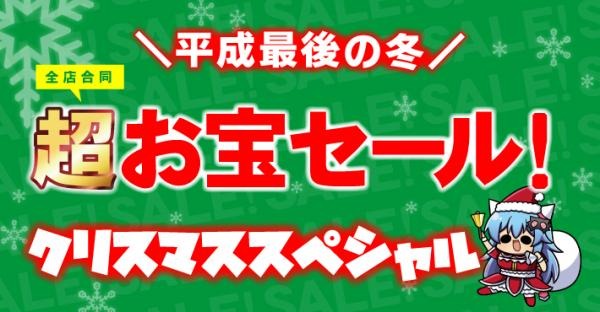 「平成最後の冬 全店合同 超お宝セール クリスマススペシャル」は、CD/DVD/Blu-ray、コミック、フィギュア、タペストリー、キャラクター雑貨、同人誌、ゲームソフトなど普段より取り扱っている商品が、12月22日(土)~24日(月・祝)の3日間、超お買い得になります。※各ショップにより期間が異なる場合がございます。