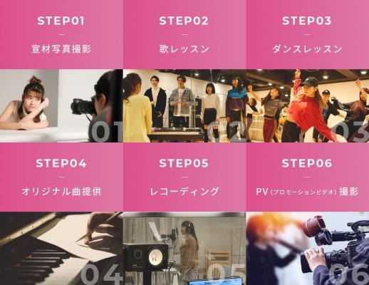「IDOL.」は、日本初のアイドルの原石を発掘・育成・支援するプロジェクトで、アイドルを目指す上で必要な「宣材写真撮影」、「歌レッスン」、「ダンスレッスン」、「オリジナル曲提供」、「レコーディング」、「PV撮影」の6つのステップをすべて無料で受ける事ができます。ステップ6までクリアしたアイドルの原石は、「アイドルどっとカンパニー」に所属し、本格的なアイドルとして道がスタートします。