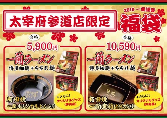 ・5900円福袋(一蘭ラーメン2種(各5食)、有田焼一蘭オリジナルどんぶり、オリジナルグッズなど)
