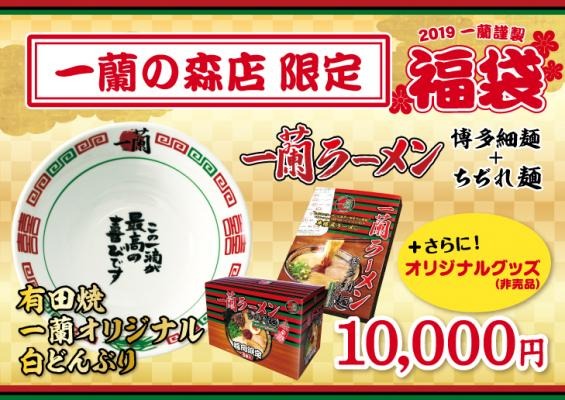 ・10590円福袋(一蘭ラーメン2種(各5食)、有田焼一蘭オリジナル重箱どんぶり、オリジナルグッズなど)