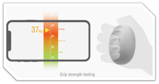 oriori ballには金属製の握力センサーとモーションセンサーを内蔵されており、精密な測定を再現しています。