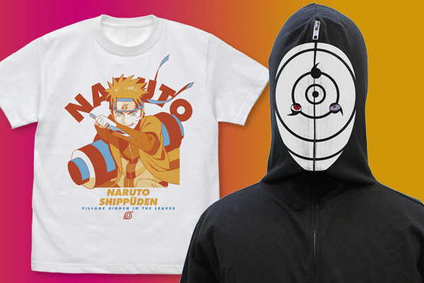そしてTVアニメ『NARUTO-ナルト- 疾風伝』からは、クナイを構えた「うずまきナルト」がかっこよくデザインされたTシャツに、シリーズ後半のキーとなる「仮面の男」のパーカーが登場。パーカーのフードを閉じることで仮面が現れる仕様で、仮面の男になった気分を楽しめる一着です。