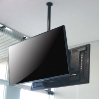 天井からモニターを2面吊り下げる薄型ディスプレイハンガー2機種、背中合わせのV字設置タイプと、横並びの2連設置タイプを、株式会社オーエスから新発売! 12月に出荷開始いたします。