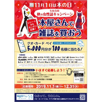 トーハン 11月1日「本の日」連動「本屋さんで雑誌を買おう 5社合同 秋の女性誌キャンペーン」を実施~「POS V」導入店限定の共通ポイントキャンペーン 抽選でQUOカードPayをプレゼント~