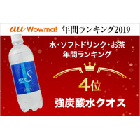 au Wowma!『水・ソフトドリンク・お茶 年間ランキング2019』 11万8千点以上の商品の中から、第4位!強炭酸水クオス