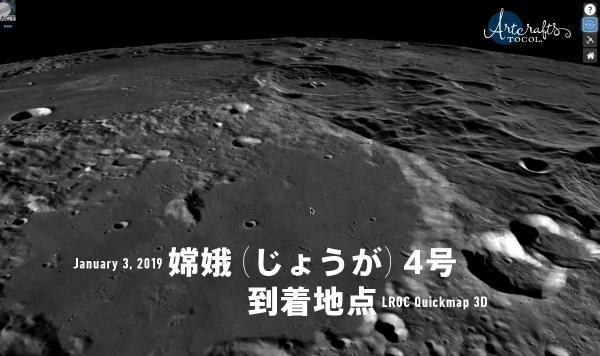TOCOLは、世界で初めて月の裏側に軟着陸した中国の無人探査機「嫦娥(じょうが)4号」の着陸地点「フォン・カルマン・クレーター」周辺のLROC Quickmap(月面3Dマップ)動画を公開した。(1月5日)