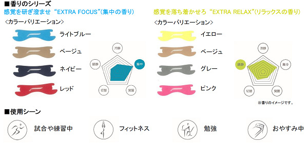 「エクストラフォーカスの香り(集中)」「エクストラリラックスの香り(リラックス)」の製品テストでは、脳科学・スポーツ科学の側面から香りによるあらゆる効果が確認されている。