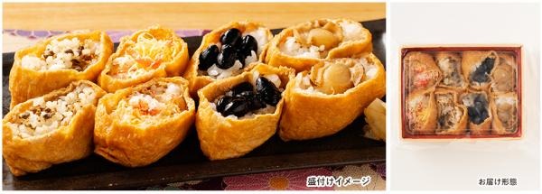 内容 : 黒豆いなり・ちりめん山椒いなり・紅ずわいがにいなり・帆立貝いなり