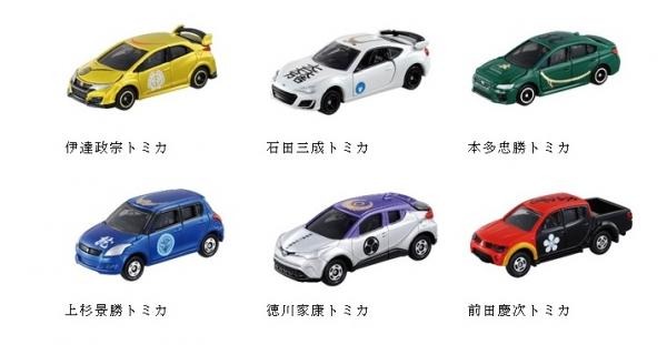 ※「伊達政宗トミカ」のみ、A4サイズ変形BOX型コレクションボックス付。他は通常トミカパッケージ。