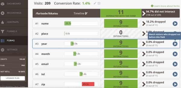 デモ:https://mouseflow.com/demo/ ページ内でボタン・フォームをクリックして