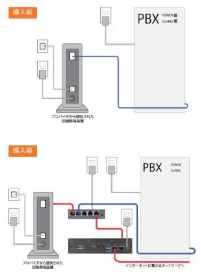 ひかり電話(光ファイバーを利用したIP電話サービス)をご利用のお客様であれば構内交換機(主装置・PBX)を変更することなく、省スペース機器とHUBを設置するだけでご利用頂けます。