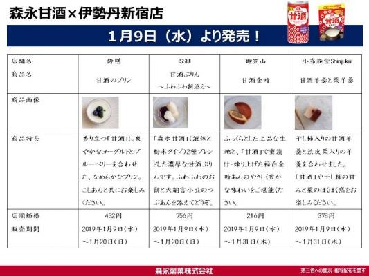 森永製菓株式会社(東京都港区芝 代表取締役社長・新井 徹)は、2019年で発売50周年を迎える「森永甘酒」を商品に使用した甘味を、株式会社三越伊勢丹(東京都新宿区新宿 代表取締役社長・杉江 俊彦)の運営する伊勢丹新宿店で1月9日(水)より限定発売いたします。伊勢丹新宿店で取扱いのある7ブランドでの豪華な展開となります。