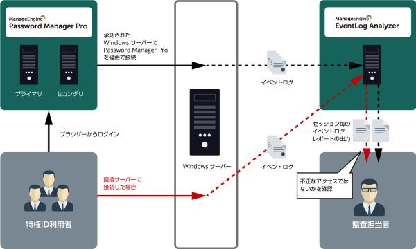 EventLog Analyzerの最新版「ビルド12011」では、Password Manager Proと連携して特権IDの利用に特化した監査レポートを簡単に出力できるようになりました。また、当連携機能を用いることで、Password Manager Proを「介さない」アクセスログについても、瞬時にレポート化することが可能です。