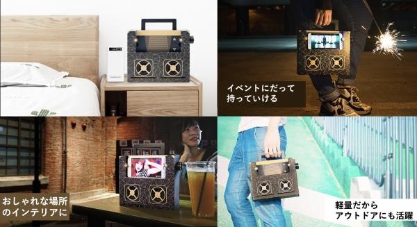 また、約500g(外付けバッテリー除く)と軽量、10,000mAhのバッテリー(別途市販のモバイルバッテリーをお買い求めください)で最大16時間再生とロングユースでアウトドアやパーティシーンにもぴったりです。
