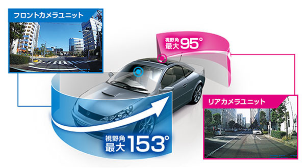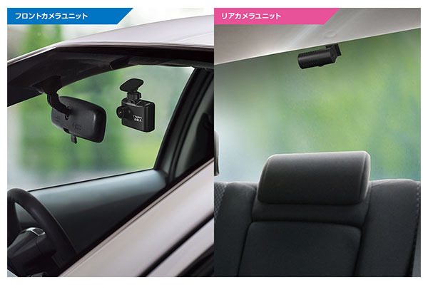 「DRY-TW7500d」「DRY-TW7500dP」は、フロント、リアの2つのカメラで車両の前後を記録します。
