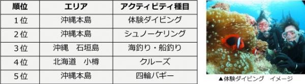 中国人旅行者の旅の目的としては、メイド・イン・ジャパンの買い物のニーズが引き続き高いものの、地域の特産物の飲食や自然景勝地観光などへの興味も高く、観光消費額の高額化の傾向があります。かつては団体旅行が主流だった中国人旅行者ですが、2014年のビザ緩和を受け、富裕者層を中心に旅のスタイルも団体旅行から個人旅行化へのシフトも進んでおります。特に沖縄に関しては、ショッピングと自然の両方が楽しめる点がポイントとなっております。特に、北京や天津などの華北地方からの旅行者においては、レジャーとして海水浴などを楽しむ場所が少ないことから、沖縄の美しい海を体感できる「体験ダイビング」、「シュノーケリング」といった初心者向けのマリンアクティビティが人気です。また、昨今の中国国内でのアウトドアブームを受け、日本国内でも女性やお子様連れにも人気な「釣り」体験や、国際免許の取得なく私有地内で運転を楽しむことができる「四輪バギー」体験など、事前の準備を必要とせず、手軽に非日常の自然体験ができるプランが人気の上位となっております。