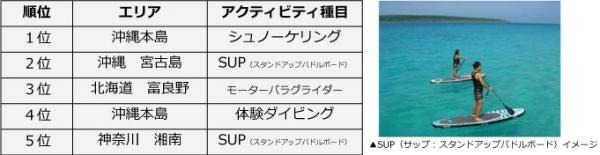 韓国人旅行者の中で予約数が顕著に増加しているのは、「SUP(サップ:スタンドアップパドルボード)」です。アクティビティ体験中に自撮り写真や動画を撮影することを目的としている20~30代の若者層に支持されています。また、中国人旅行者と同じく沖縄での「シュノーケリング」、「体験ダイビング」に関しても人気が高く、特にダイビングに関しては、自らダイビング器材やカメラを持ち込む本格派の方や、沖縄本島だけでなく慶良間諸島などの離島での体験を希望される方が増加しております。