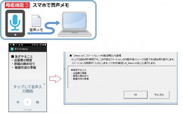 母艦機能3. スマホをPC用の音声メモ端末にします