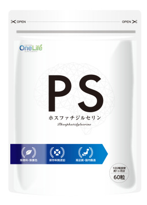 【One Life Supplements】では、大豆から高濃度抽出したホスファチジルセリンを『1日当り2粒目安PS100mg』含有しています。