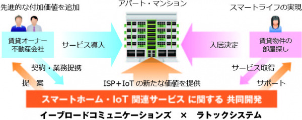 2019年4月より、イーブロードコミュニケーションズが集合住宅を対象に入居者向けの無料インターネットおよびWi-Fiサービスの提供と合わせ、ラトックシステムが開発・製造したスマート家電リモコンを付帯する新サービスを展開。
