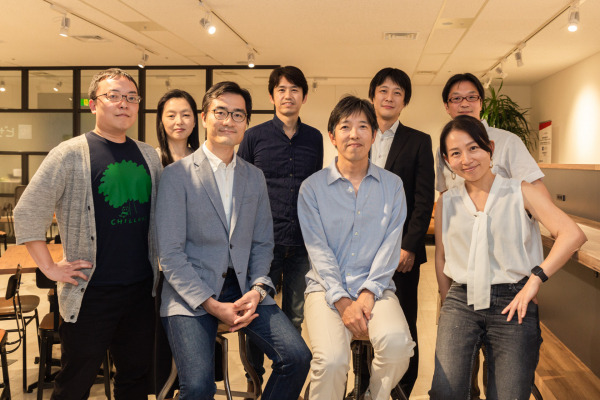 (前列左から)CTO花村、社外取締役 堅田、社外監査役 上埜、CEO端羽