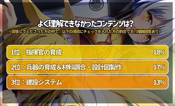 「指揮官・兵器の育成」や「材料調合・設計図製作」、「建設システム」がよく理解できなかったとのご意見をいただきました。