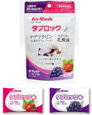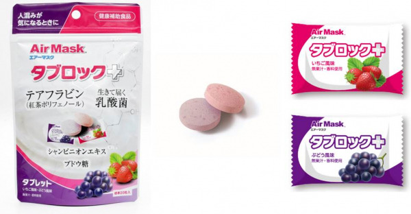 『エアーマスク タブロックプラス』は、近年話題になっている紅茶ポリフェノールの一種で、緑茶の「カテキン」の発酵により生まれる成分「テアフラビン」を含んでおります。また、「胞子」を形成する有胞子性乳酸菌を配合しているため、乳酸菌が胃酸で死滅せず生きたまま届きます。