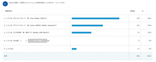 【あなたは現在、日常的にキャッシュレス決済を利用していますか?(いくつでも)】に対し、一番多かった回答が「している(クレジットカード)」で85.4%でした。「している(プリペイドカード)」55.8%、「している(スマホ決済)」35%と続きました。