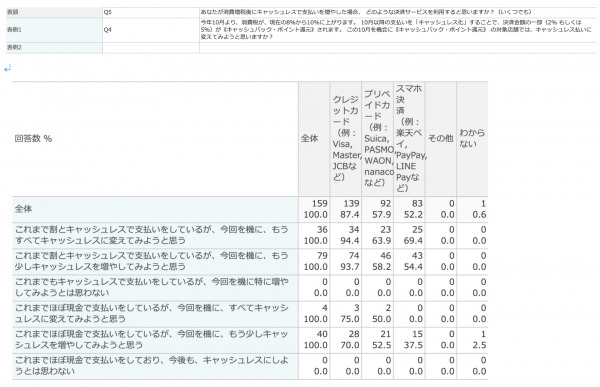 ではスマホ決済を利用するのはどのような人なのか調べを進めてみると「割とキャッシュレスで支払いをしているが、今回を機に、もうすべてキャッシュレスに変えてみよう」、 と「割とキャッシュレスで支払いをしているが、今回を機に、もう少しキャッシュレスを増やしてみようと思う」を選択している人が、消費増税後にスマホ決済を利用しようと思っている傾向にあることがわかりました。つまり、現在すでにキャッシュレスを志向している人たちが、消費増税後もよりキャッシュレスになる傾向になることが判明しました。