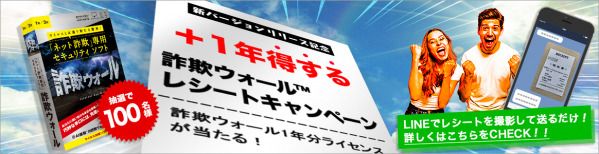 新バージョンリリース記念 プラス1年得する「詐欺ウォールTMレシートキャンペーン」