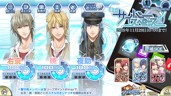 株式会社エレメンツリー(代表取締役:小川 邦弘、所在地:大阪市中央区)は、2019年11月1日にホラーBLゲーム『チギリバコ』(CV.四ツ谷サイダー、鳩マン軍曹etc)11月復刻イベント「サイバースペース」の提供を開始しました。
