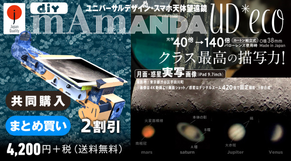 同社は、業界初の低反射8層マルチコーティングを採用した最高クラスの描写力を実現した高性能ハイスペックモデルを安価に提供することで質の高い天文教育普及を目指す。