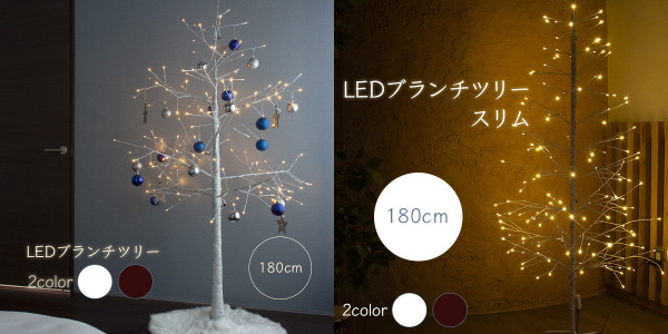 また、毎年すぐに完売してしまう枝のみのシンプルなツリー「ブランチツリー」は、2種類それぞれ白樺のようなホワイトと枯木のようなブラウンの2colorから選ぶことができるようになりました。