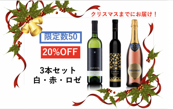 20%オフの50名様限定超早割3本セットコースは12/24までに送料無料でお届けいたします。